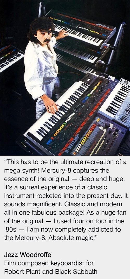 Mercury-8 is not just another recreation of the legendary classic synthesizer; it transforms one of the greatest analog synths of all time into a fresh and inspiring tool for today's musicians and producers.